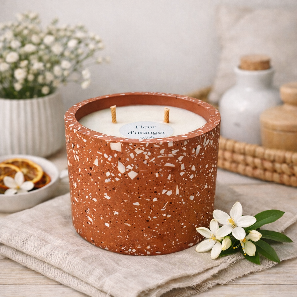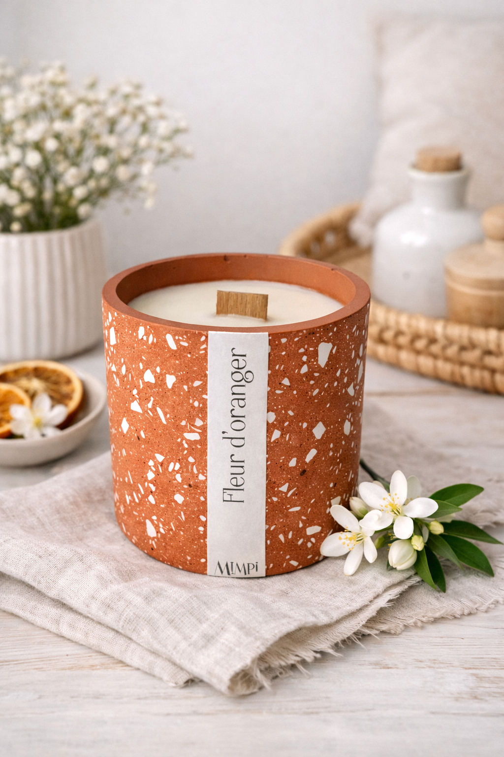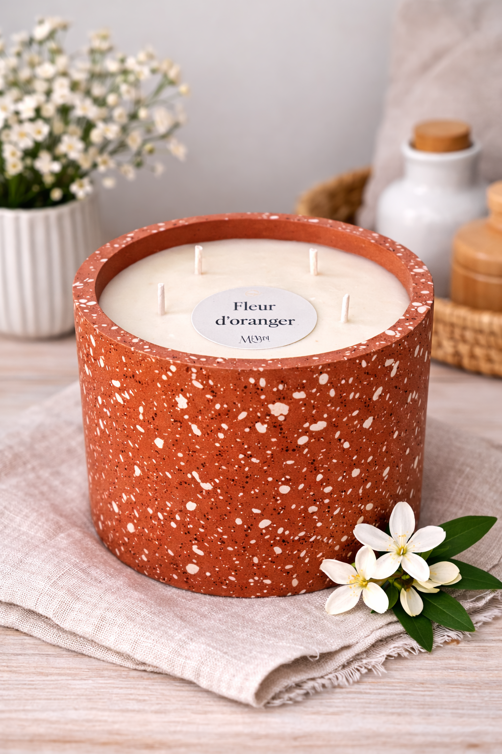 Apportez une touche de douceur et de soleil à votre intérieur avec la bougie Fleur d’Oranger, au parfum floral et délicatement lumineux. Coulée dans un pot en jesmonite terrazzo terracotta, rehaussé d’éclats de blancs, chaque pièce est unique et réalisée à la main.