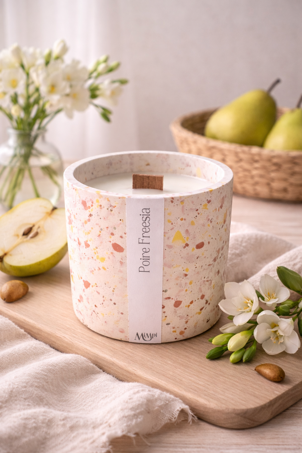 Lumineuse et raffinée, la bougie Poire Freesia diffuse un parfum frais et délicat où la douceur juteuse de la poire rencontre la finesse florale du freesia. Une fragrance élégante et légère qui apporte une atmosphère fraîche et printanière à votre intérieur.