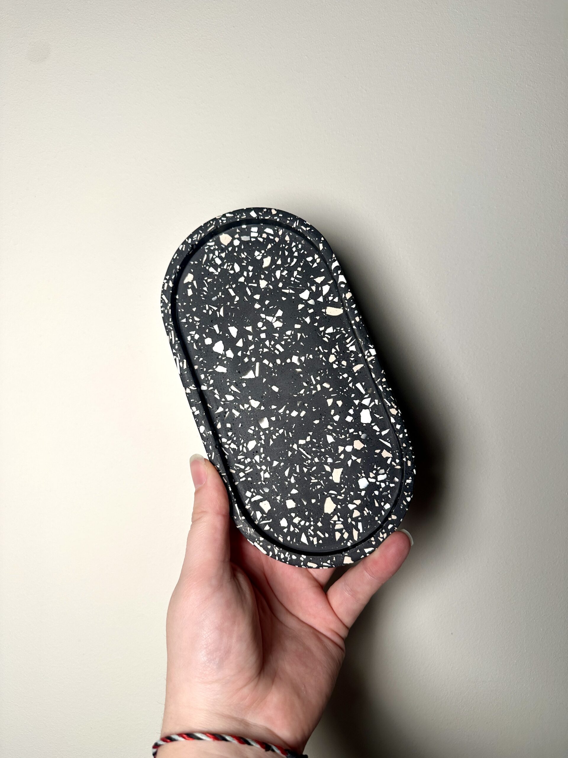 Ajoutez une touche d’artisanat contemporain à votre décoration avec ce plateau terrazzo au charme subtil.